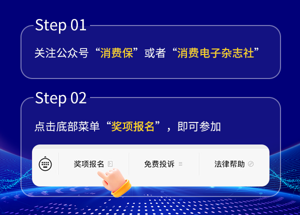“消费保”“消费电子杂志社”微信公众号,点击菜单栏“奖项报名”